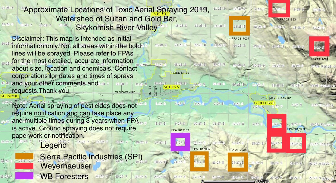 2019 aerial spray applications for the Skykomish River Watershed and map:
